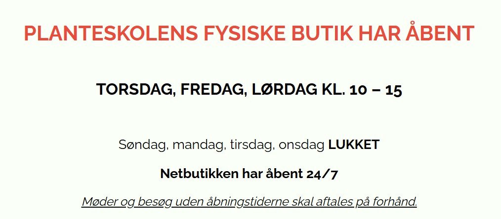 PLANTESKOLENS FYSISKE BUTIK HAR ÅBENT